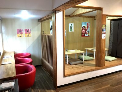 イートインというより、居酒屋に近いレベルでしっかりと席が用意してあります。ビールやチューハイなどのお酒も提供されているので、ここでお安く宴会もできそう!