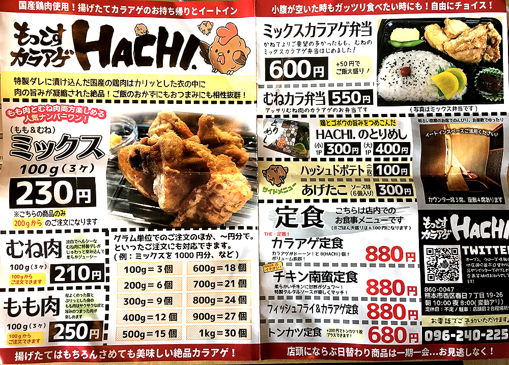熊本市西区春日、田崎市場の通りにある「もっこすカラアゲHACHI.」さんをご紹介。