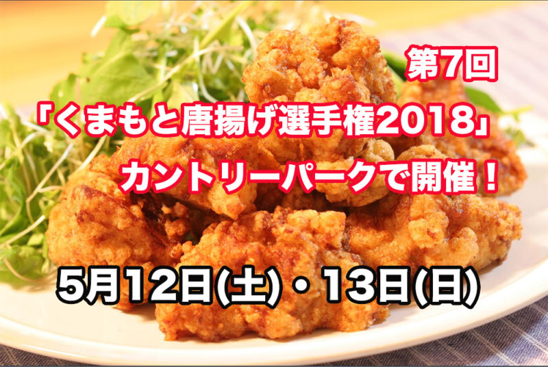 県内のさまざまな“鶏の唐揚げ”が一同に集まる大人気のイベント「第7回 くまもと唐揚げ選手権2018」が5月12(土)・13(日)日にカントリーパークにて開催されます!