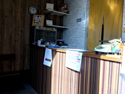 テイクアウト専門店で、店内に入るとすぐにカウンター。のれんの奥から唐揚げが揚げられているであろうジュージューな音が漏れ伝わってきます。