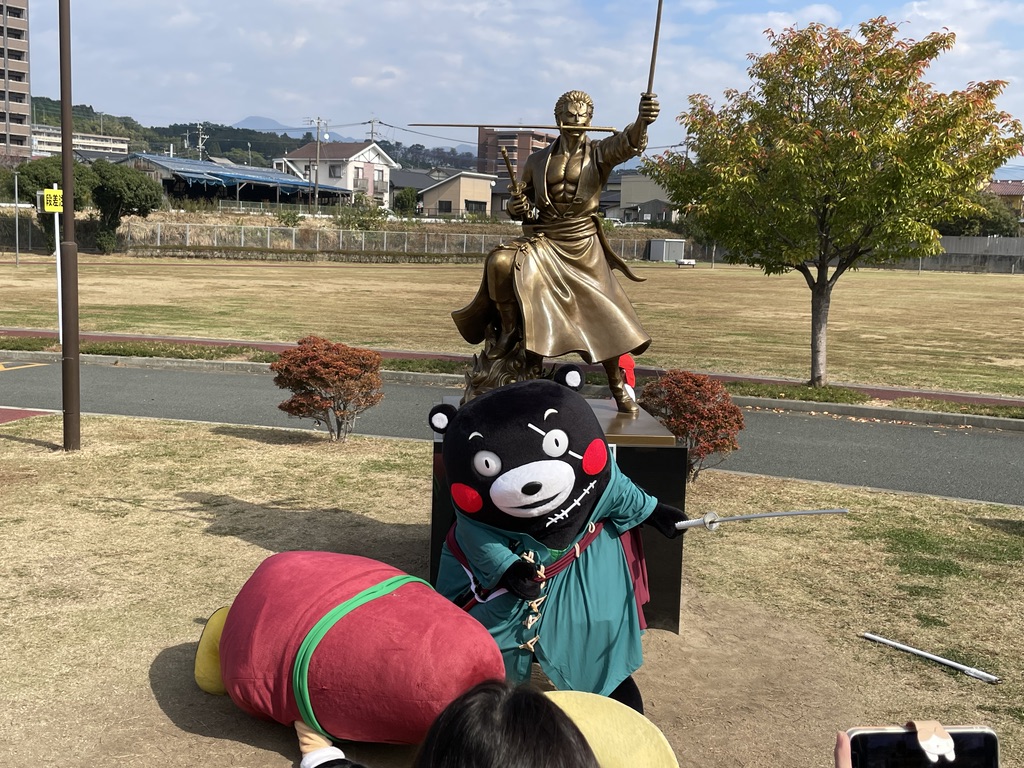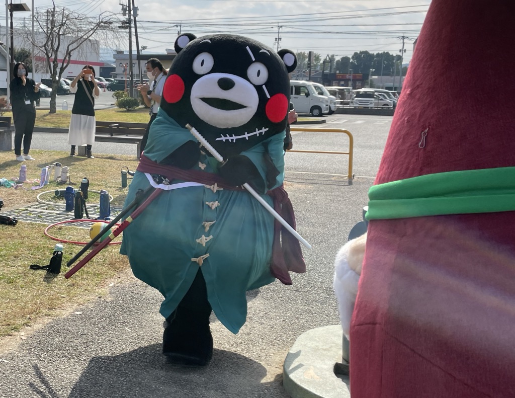 勢いよく走ってきたくまモン(ゾロ仕様)に