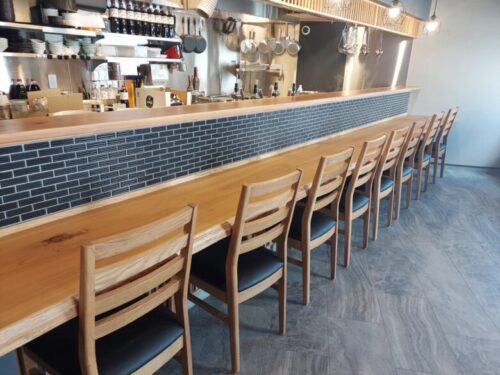 道場の中は、漆黒な外観とは裏腹に木のテーブルやイスが並ぶ落ち着いた雰囲気だ。