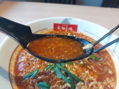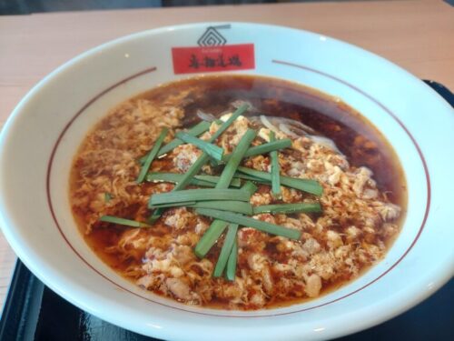 かきたまのまろやかさ、ひき肉の肉汁、旨辛のスープが絡んで、あっというまに麺が無くなっちまう!