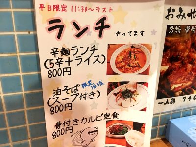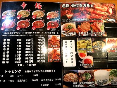 こちらも辛麺だけでなく、ランチでは他にも「油そば」や「カルビ定食」も提供。カルビにはなかなか惹かれますが、今日はお昼に食べられる辛麺ということで…
