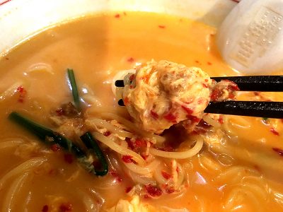 やはり辛麺にとってはこの「ふわふわたまご」も重要なアイテム!じっくりと味が染みていて、辛麺でしか味わえない独特の風味になっていました。