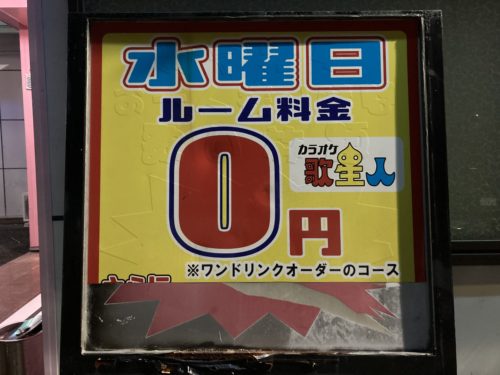 やってきました!「カラオケ歌星人」。と、ここで気になる看板を発見!