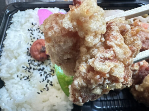 しっかりと味付けされた唐揚げはカリカリの衣に食べ応えのある肉感があり、冷めても美味しくいただけます。