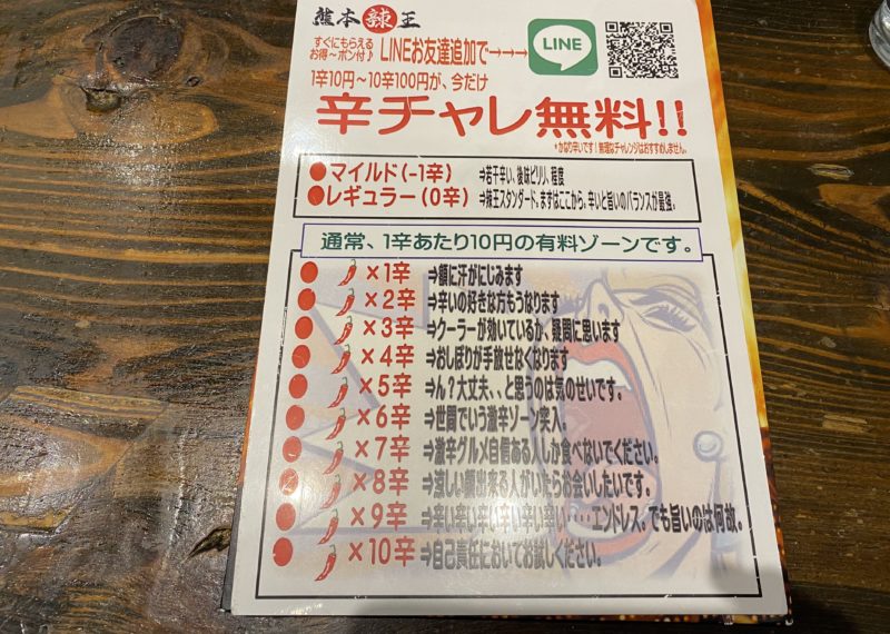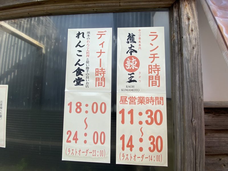情報量が多いですが、「れんこん食堂」と書いてあるランチ時間の「熊本辣王」さんです。