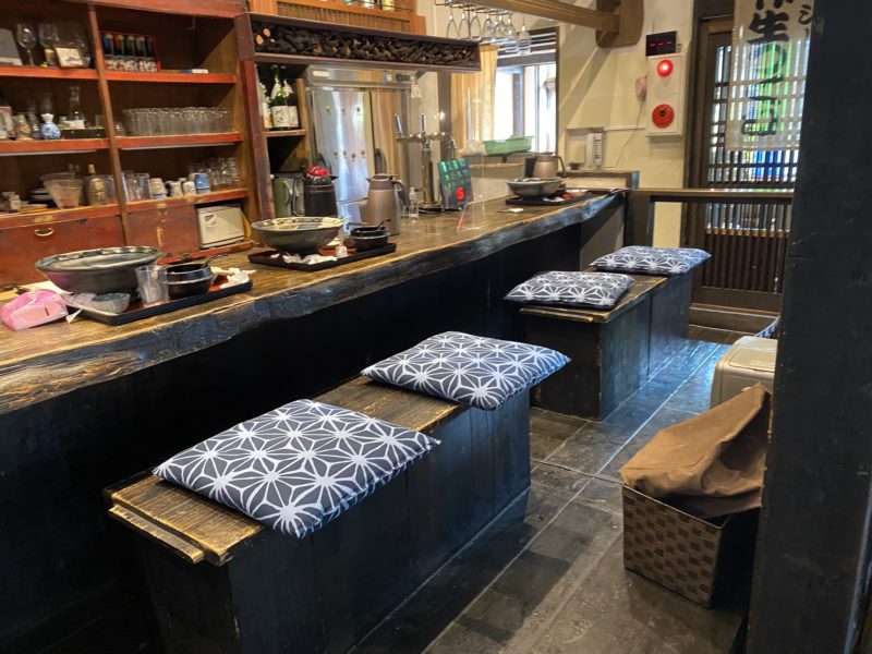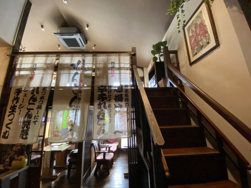 店内はカウンター席が6席ほど、テーブル席や2階席もあり、広い店内です。