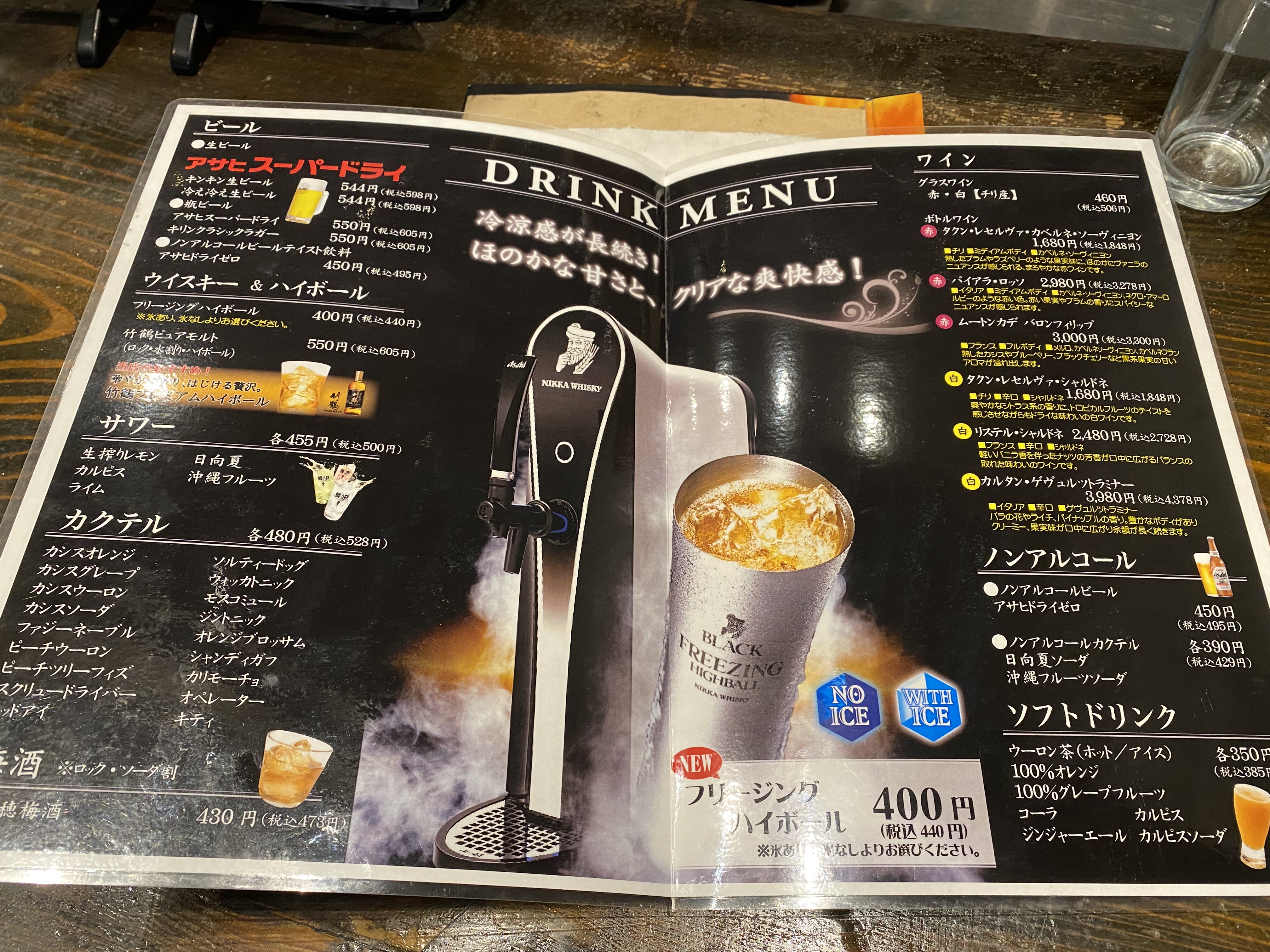 昼から飲みたい方もドリンクメニューが充実していますよ。フリージングハイボールもキンキンに冷えているようです。