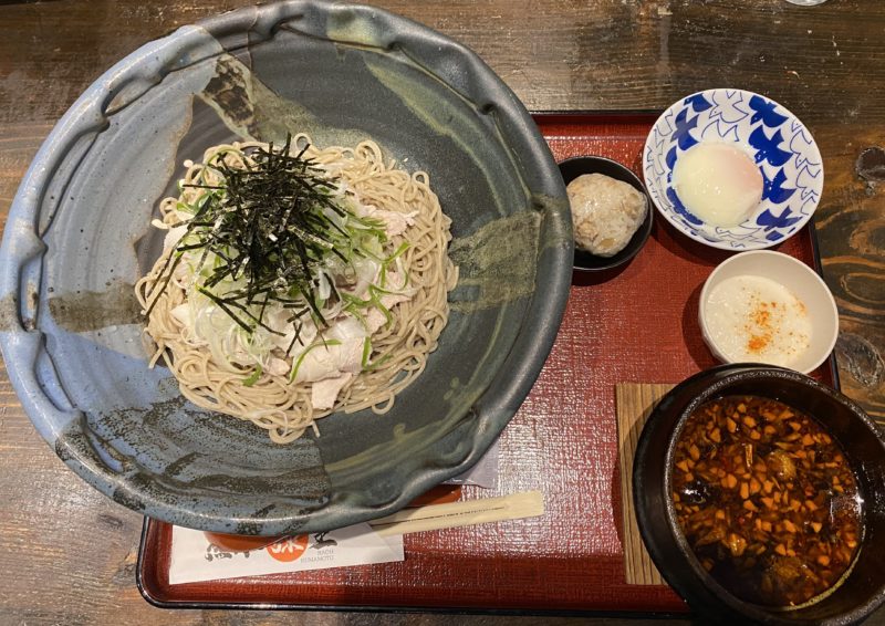 新感覚の醤油ベースの辣油つけ蕎麦。辛さにチャレンジしてみてはいかがでしょうか。