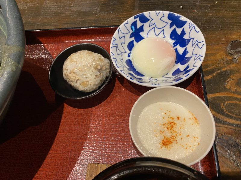 温泉卵を入れたところで、すき焼きのような味に変わり、ご飯を入れたくなります。
