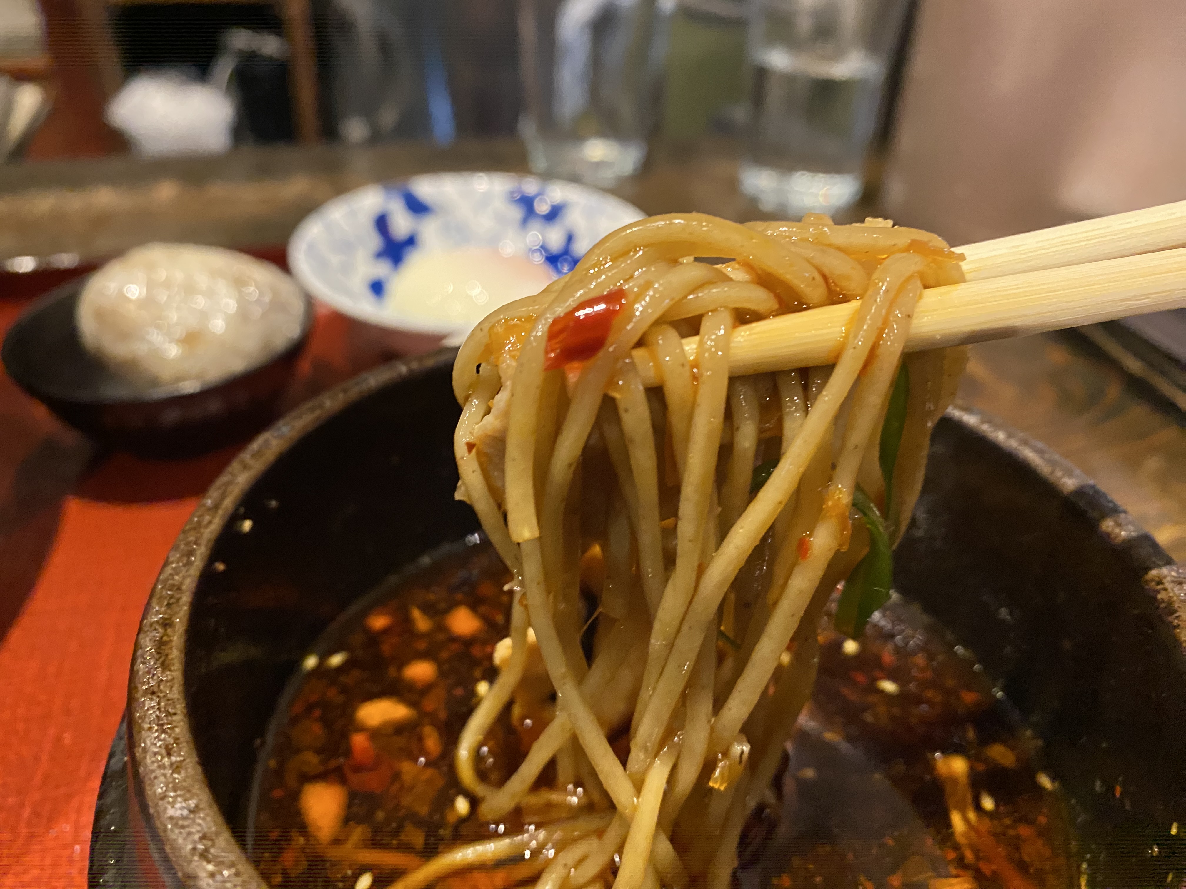 写真ではわかりにくいですが、つけ汁がグツグツと沸騰しています。見るからに辛そうです。