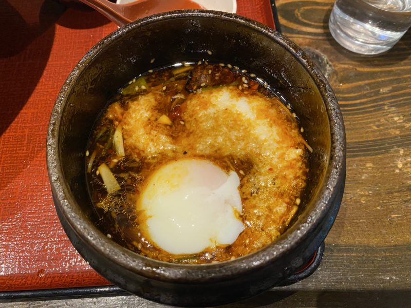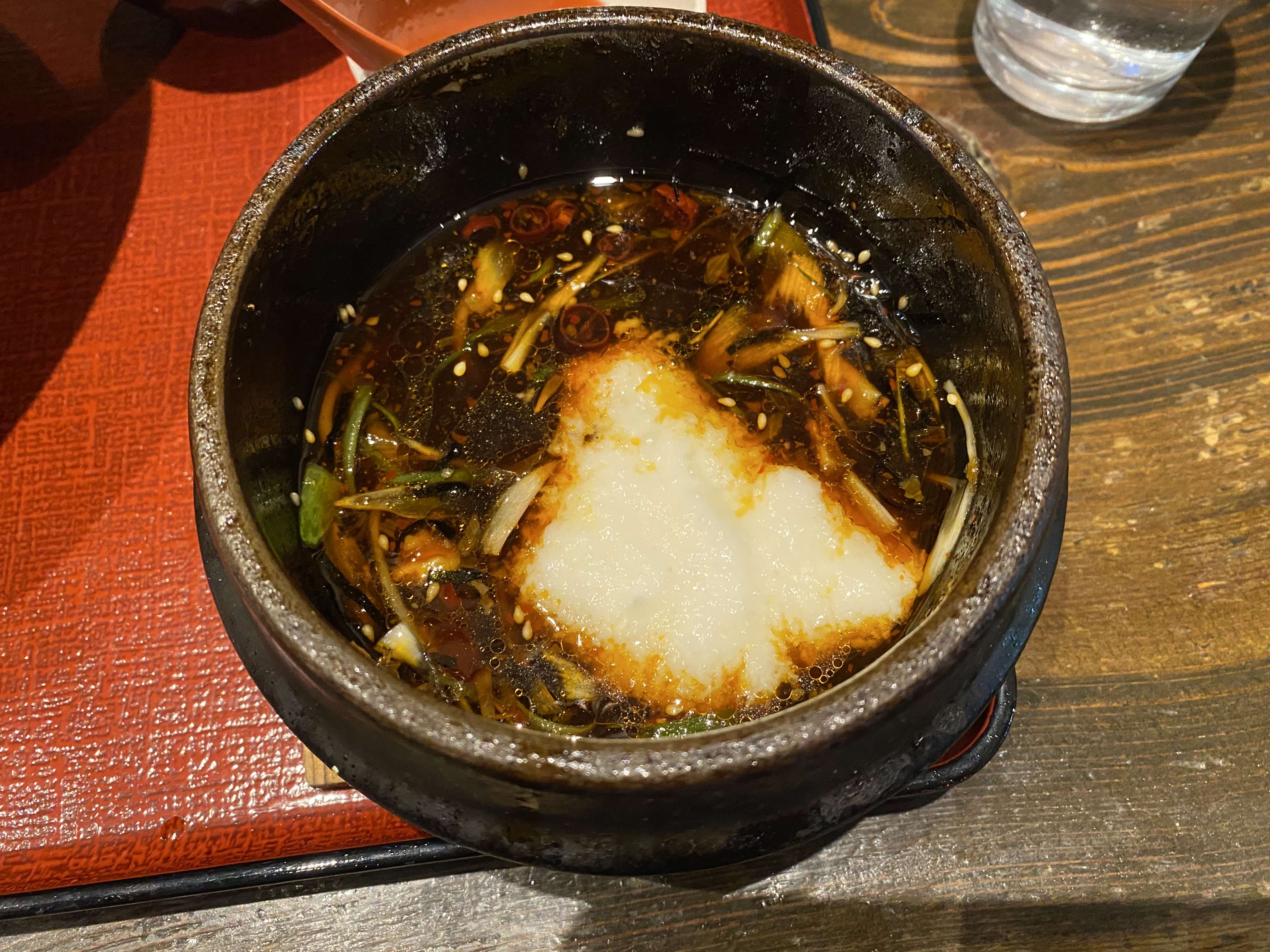 ちょっと辛すぎたなってときは、山芋のトロロと温泉卵が付いてきますので、辛さの調整もできます。
