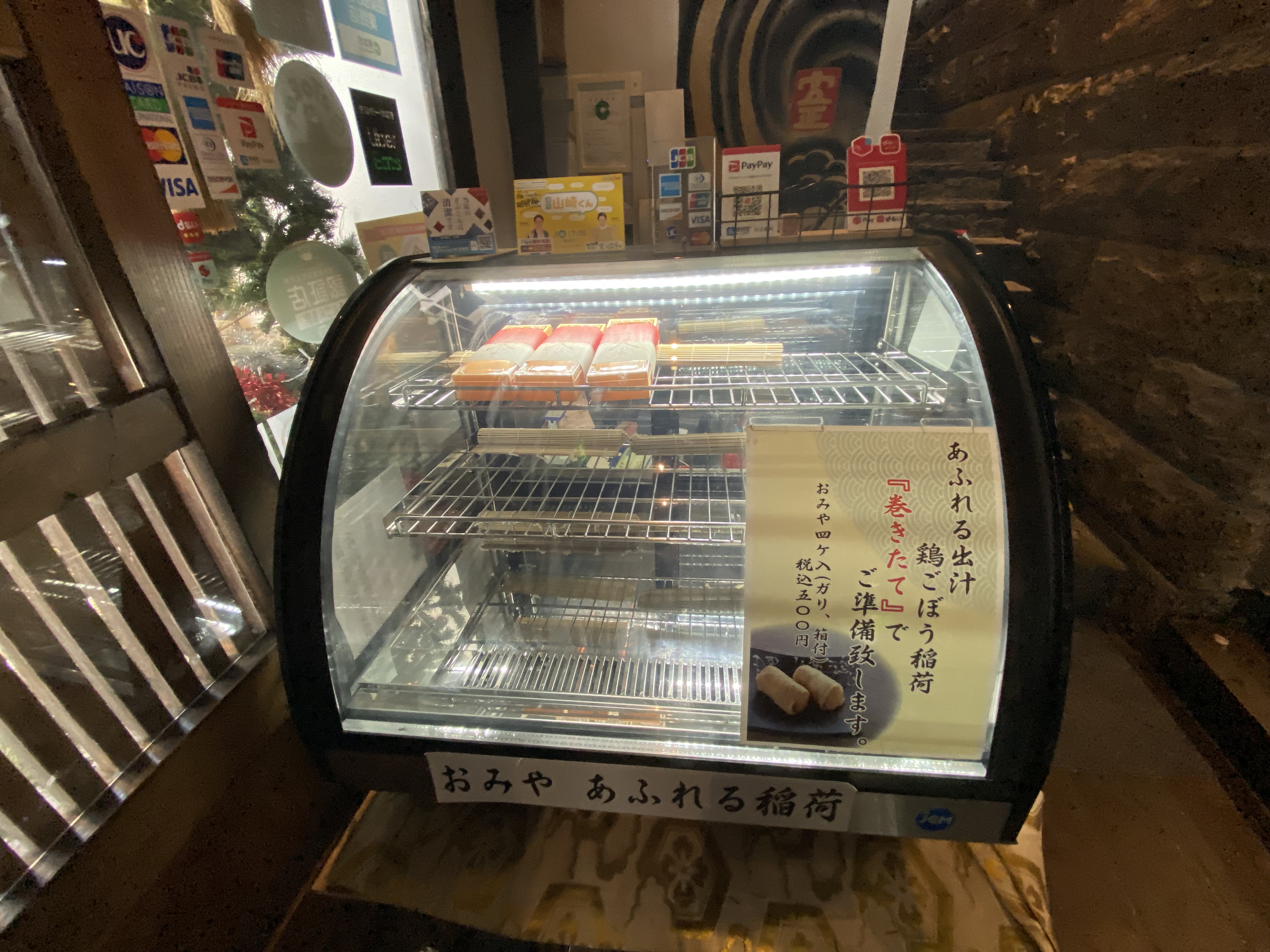 お持ち帰りのお土産として「あふれる出汁鶏ごぼう稲荷」メニューで気になっていたんですよね。