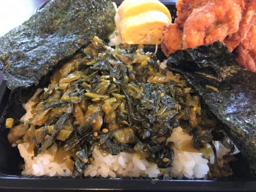 また、大きな海苔の下には、手作り高菜がぎっしり!