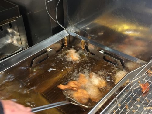 注文後に厨房のフライヤーで、ジュージューと揚げてもらえるのですが、実はこのフライヤーがただものではない!!!