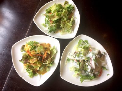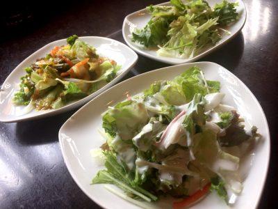 セットのサラダはドレッシングを選ぶことが出来ます。