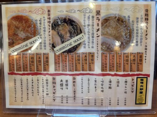 「黒ラーメン」と「赤味噌ラーメン」はComming soon!とのことですので乞うご期待!
