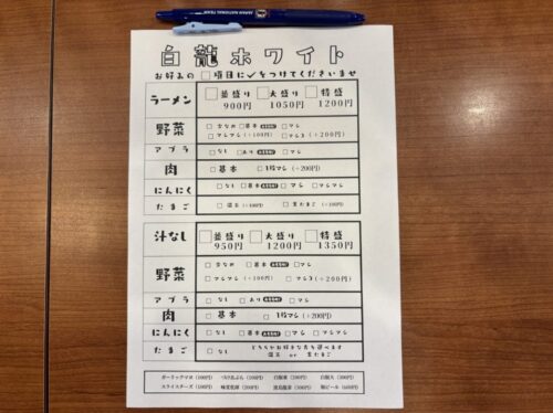 現在「背脂豚骨ラーメン~白龍ホワイト~」のみで