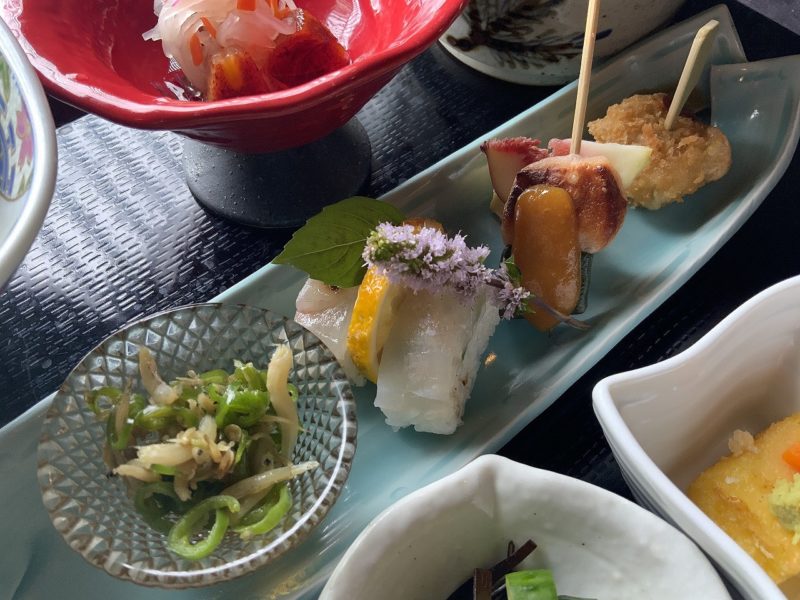 添え物から漬物にいたるまで、ほぼすべてが手作り。最近では魚料理にも力を入れていて津本式血抜き法という技術で血抜きした生臭さの少ない美味しい魚料理を出されているそうです。