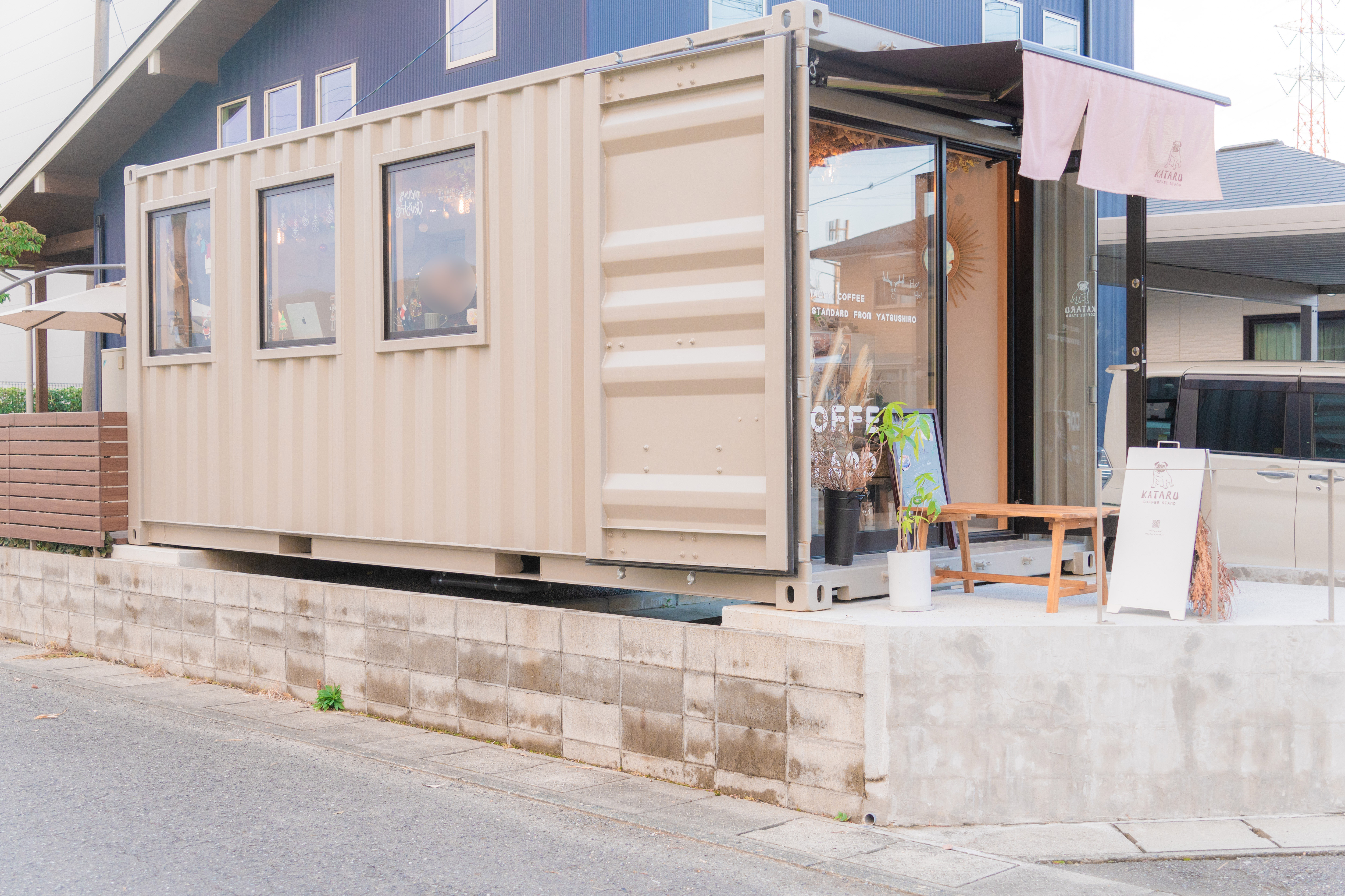 新八代駅の近くにあるコンテナタイプの小さなカフェ
