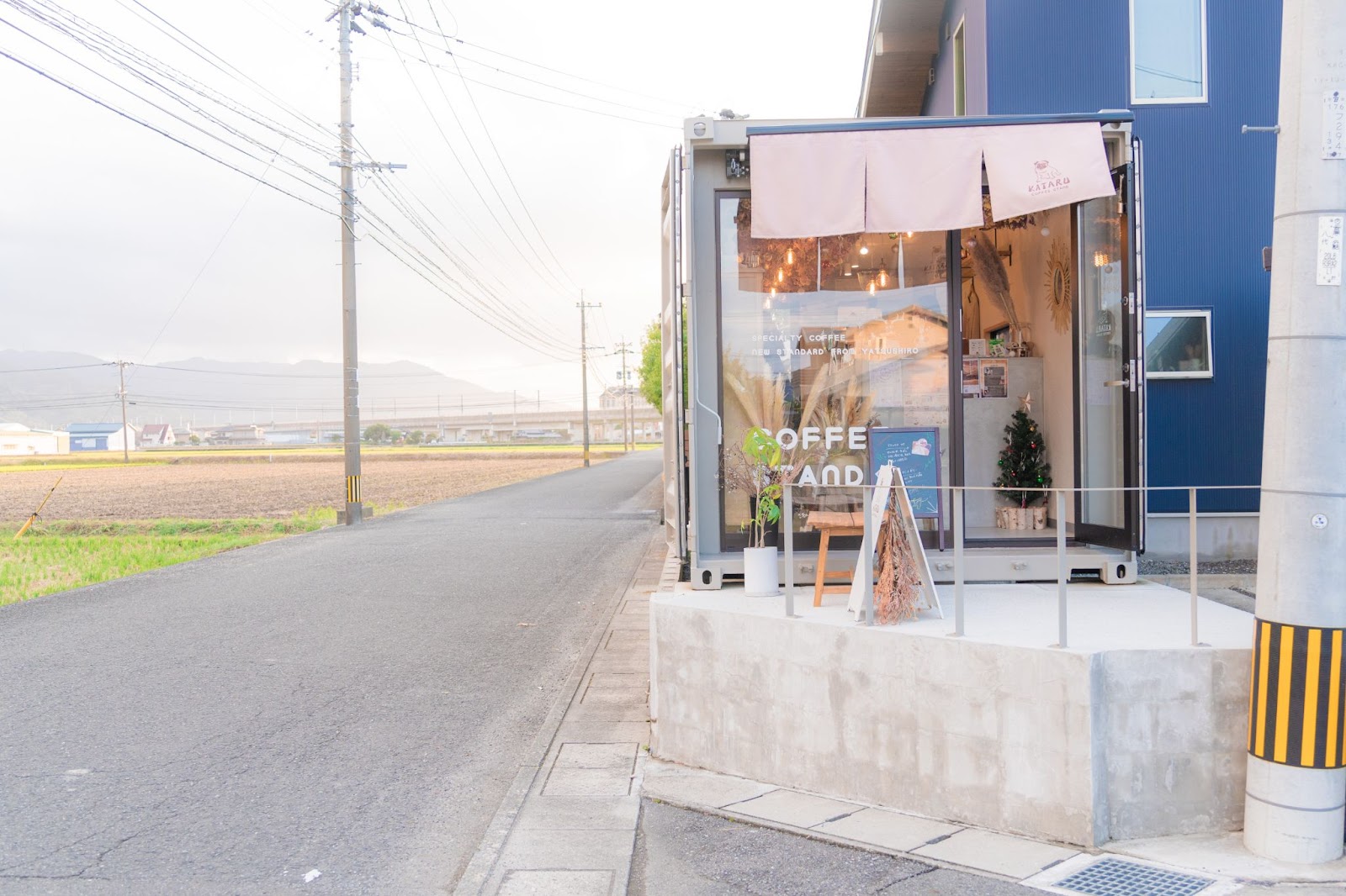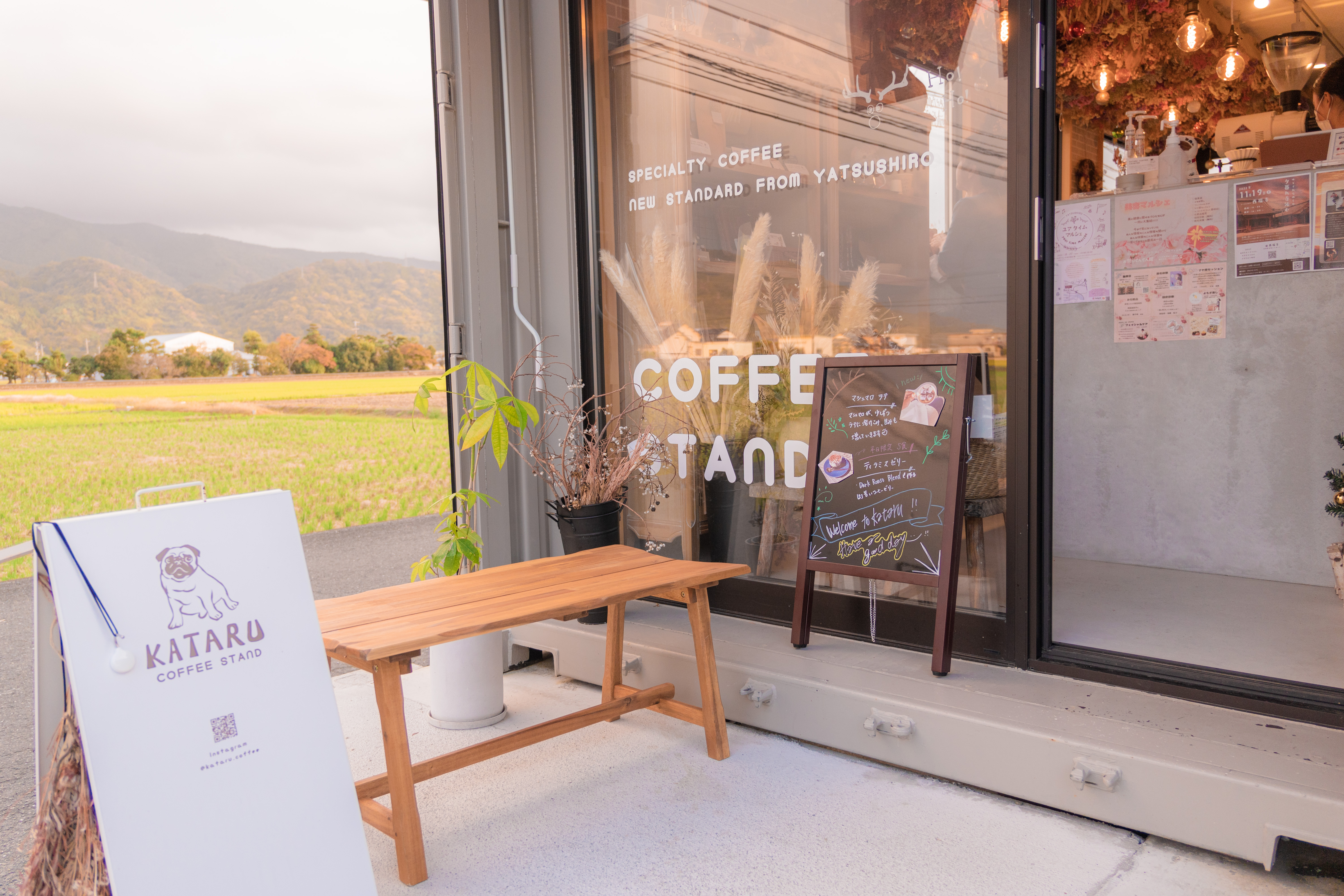 【カタルコーヒー】コンテナタイプの小さなカフェ。ドライフラワーと田んぼを眺めながらいただくコーヒーは至福の時間でした【熊本・八代】