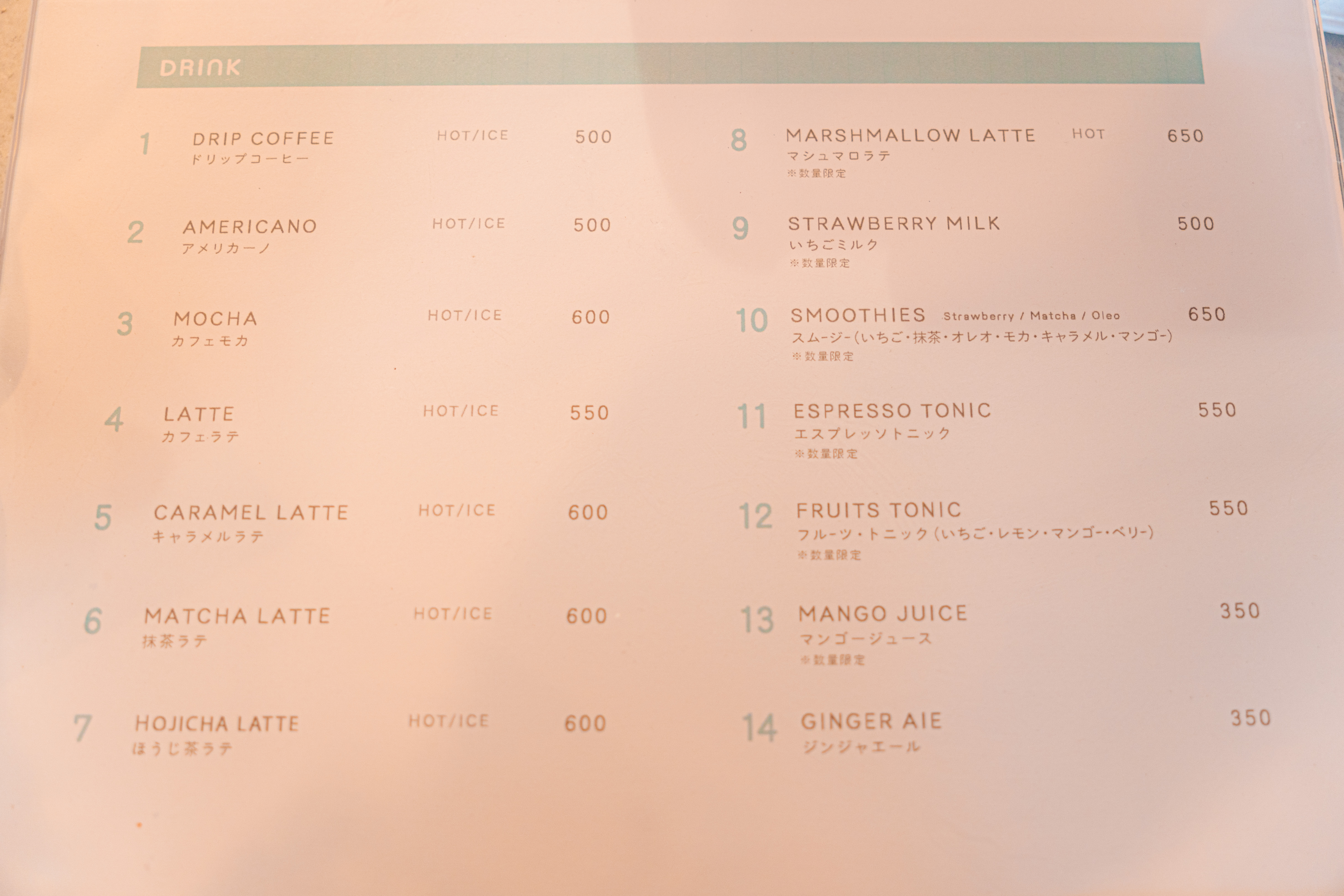 メニューは種類豊富なドリンクとスイーツの数々、、、