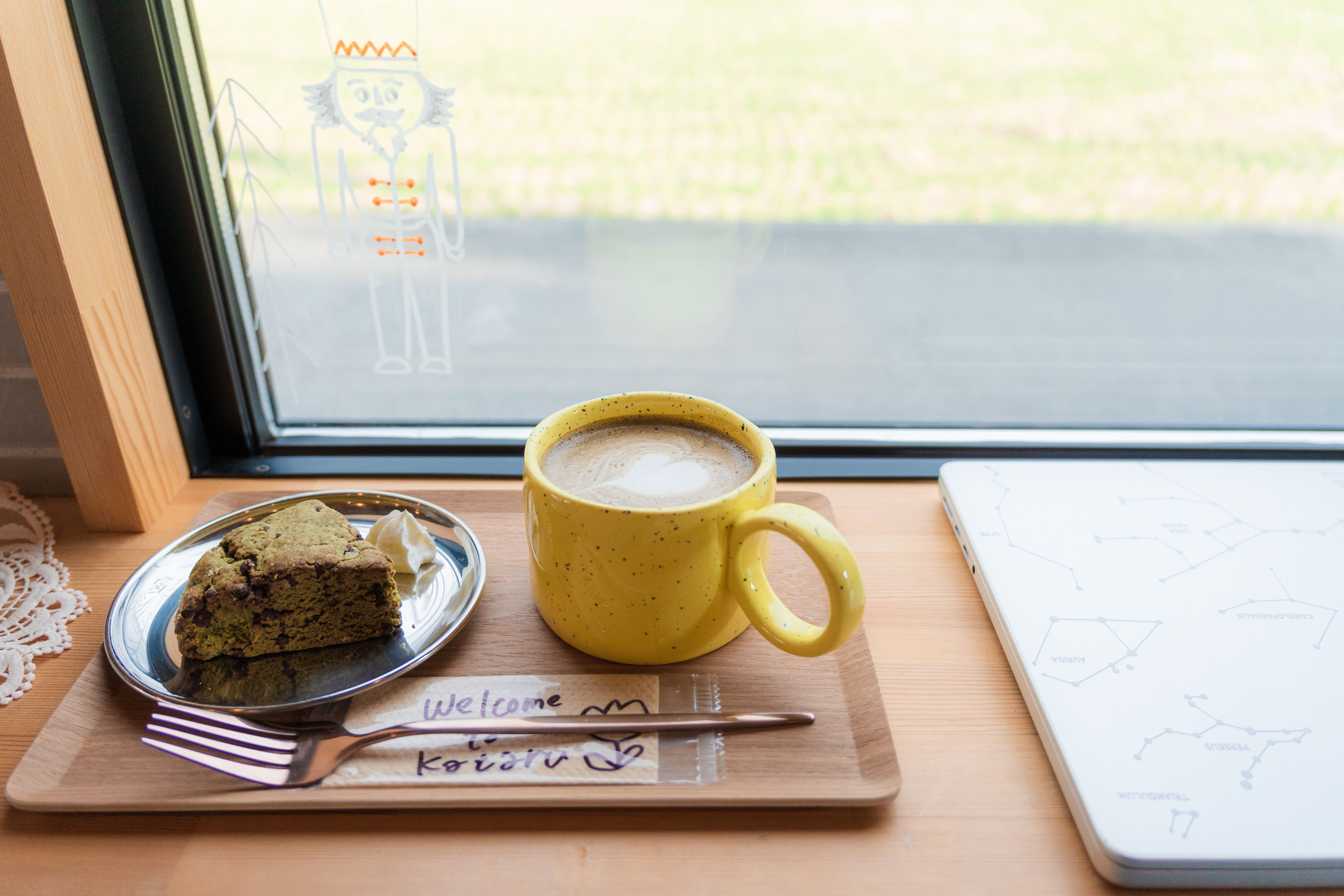 ほうじ茶ラテ(¥600)とダダスコーン(¥350)