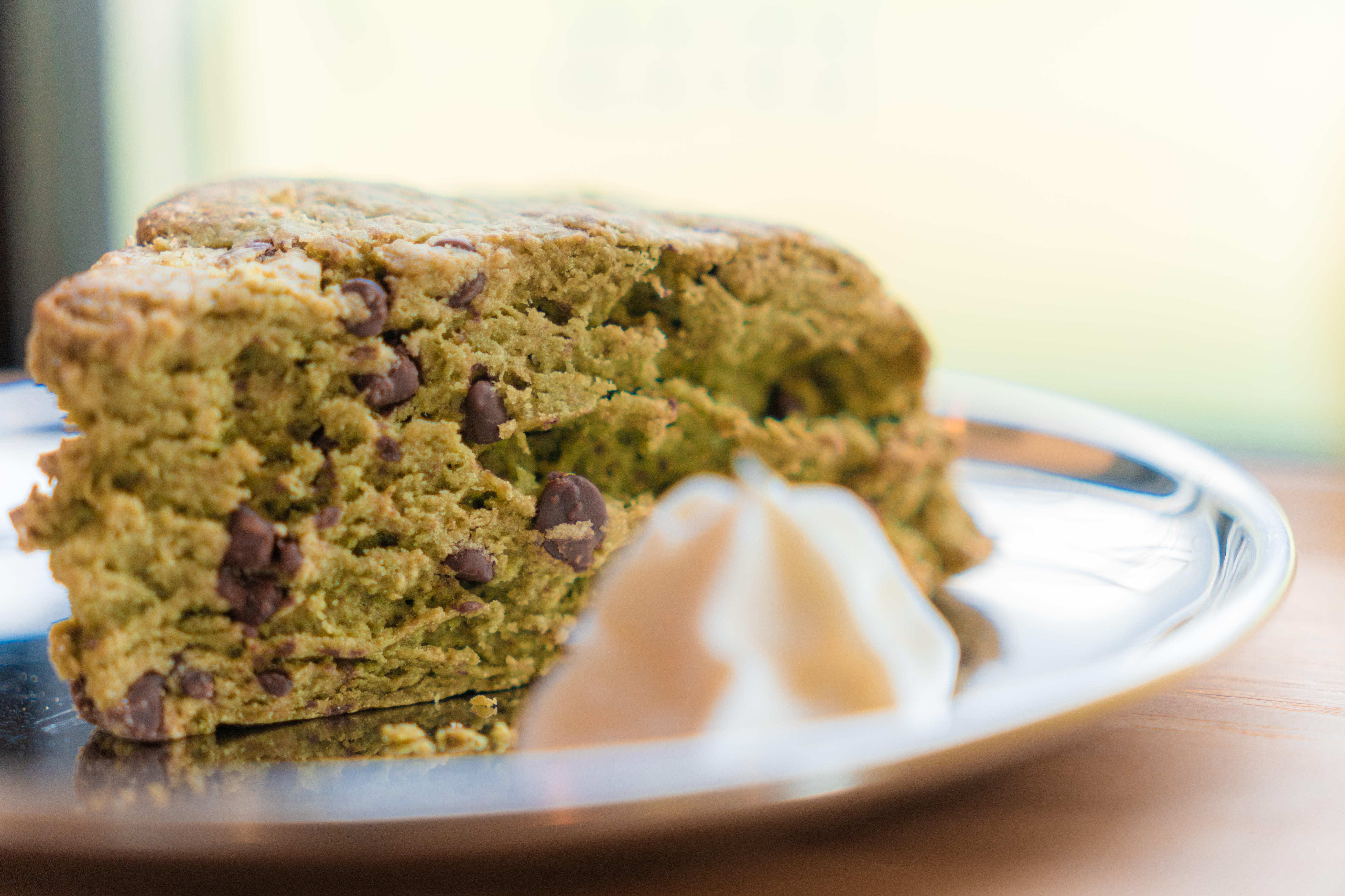 しかし、このように+チョコチップとして焼き上げることでチョコチップの甘さや抹茶の渋みがより強調されるんですね。