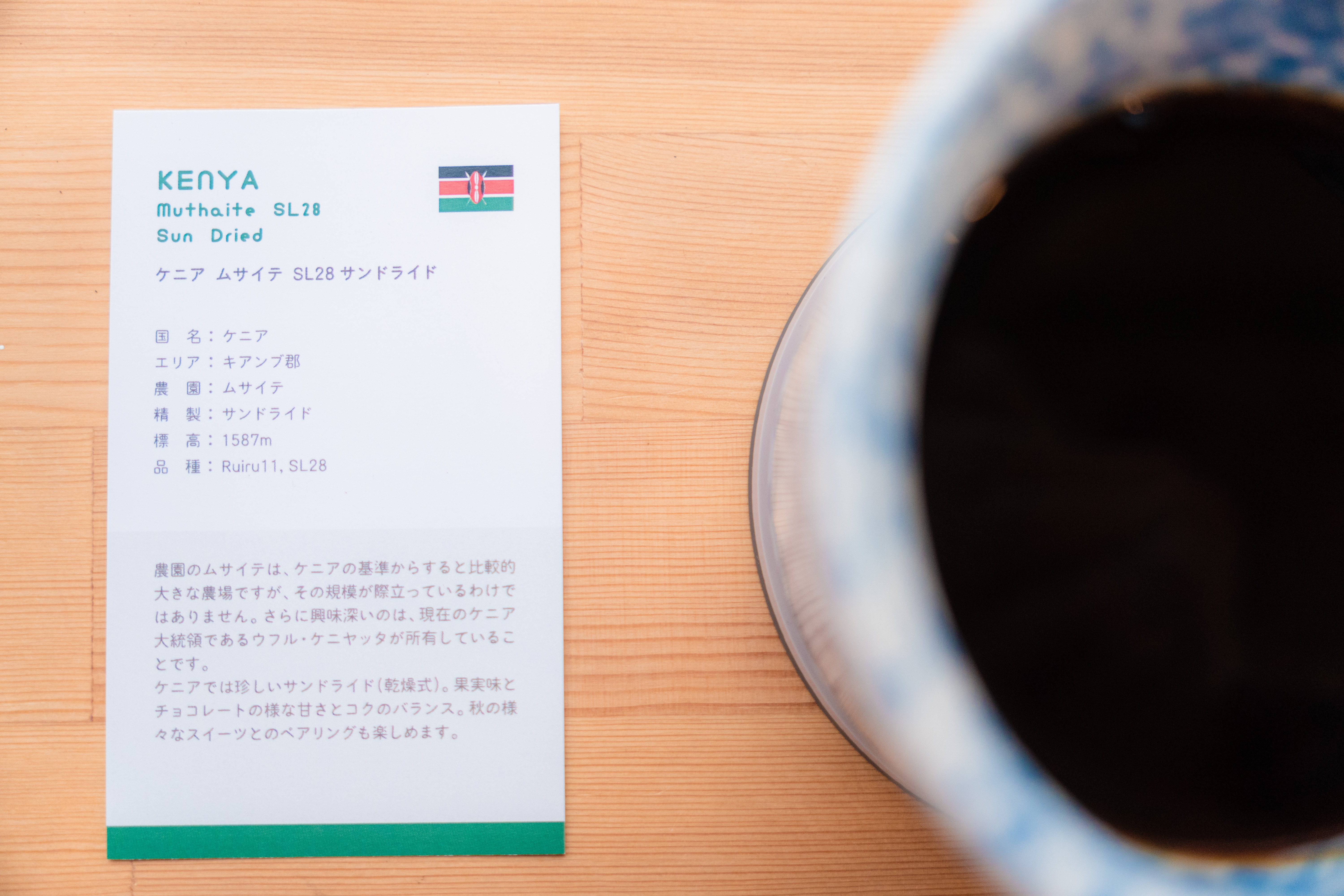 こちらを注文すると豆の紹介カードも一緒に頂きました。