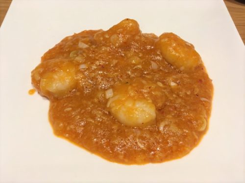 海老チリは、海老がプリップリで、ソースもスパイシーでおいしい!