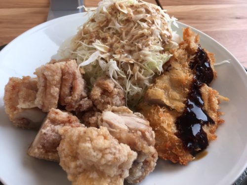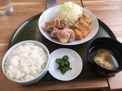 11:30~14:00までの限定で、お肉は月替わりになります。今月は、ヒレカツ1枚+唐揚げ3個の2種類のお肉が楽しめるそうで、迷わずワンコインランチをオーダー。
