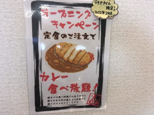 ワンコインランチは対象外ですが、オープニングキャンペーンとして、定食を注文すれば、カレーはセルフで食べ放題となります!