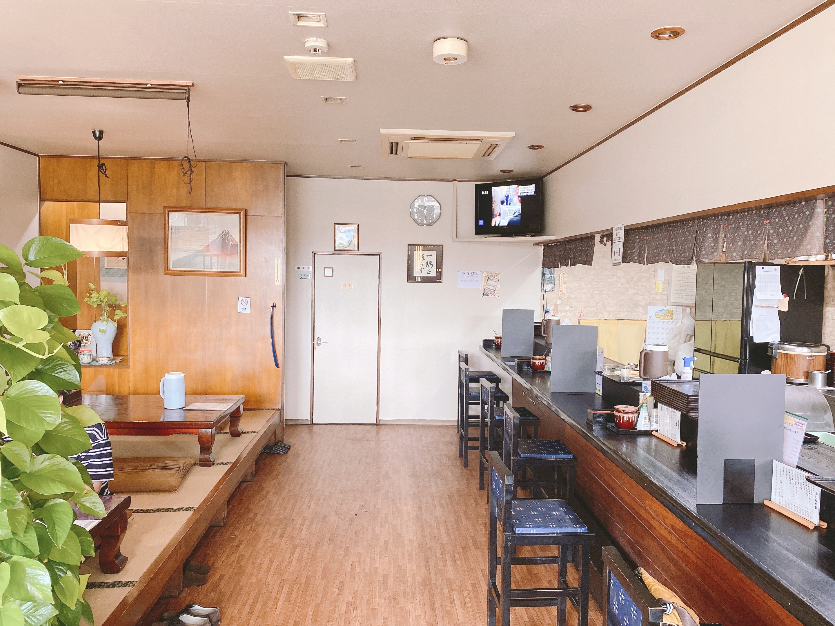 店内はカウンター席が6席ほどと座敷席が2つ、テーブル席が1つあります。
