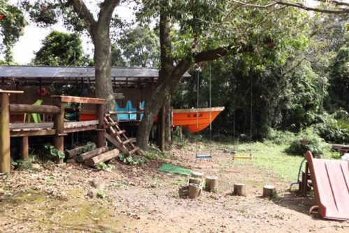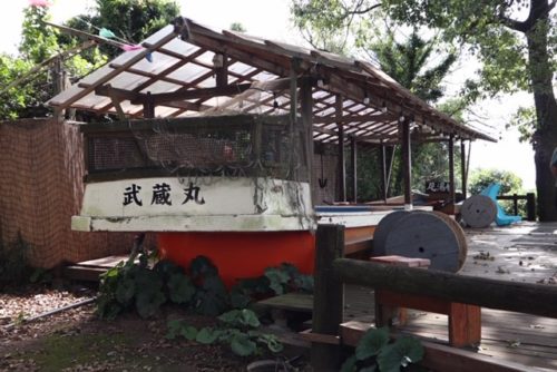 バーベキュー屋さんみたいだけど、人の気配なし。写真とか撮ってたら草むらから世捨て人の仙人みたいなお爺さんが出てきて