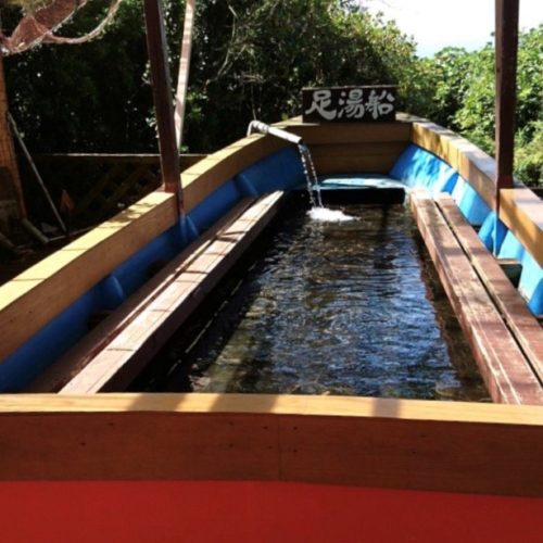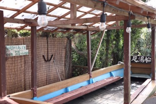 えら~いふとか台風が来るてテレビで言いよったでしょ~、だけんなんさま道具ば押し込めてしもたとですよ!爆笑!足湯はね、源泉かけ流しでね、予約が入った時にポンプで組み上げるんですよ!