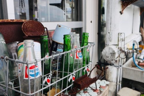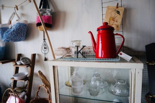 海の横でシャビーな雑貨が映えてました。