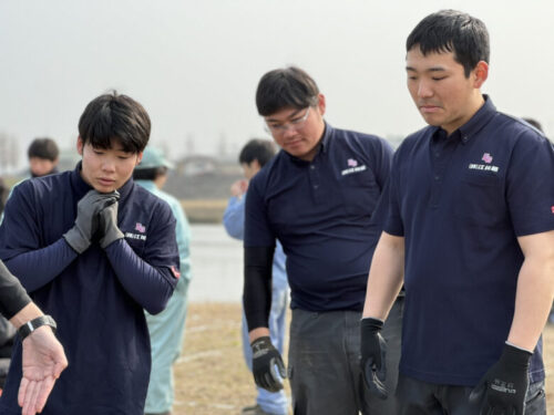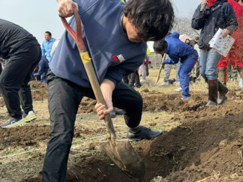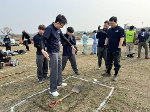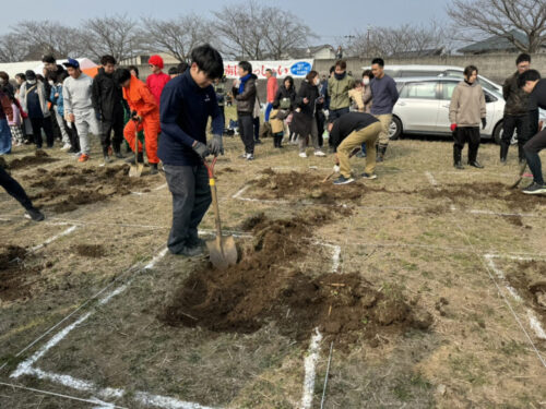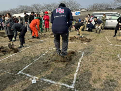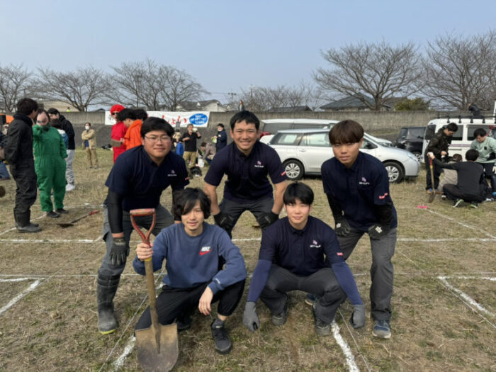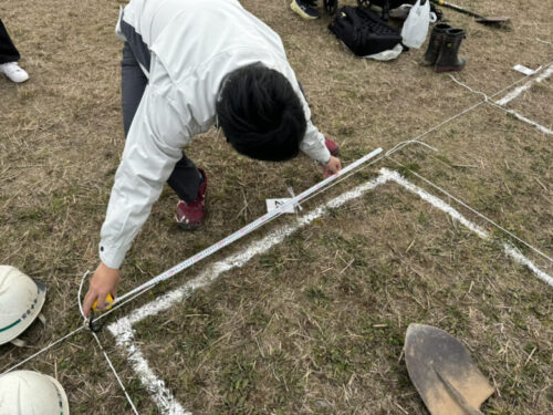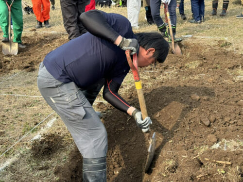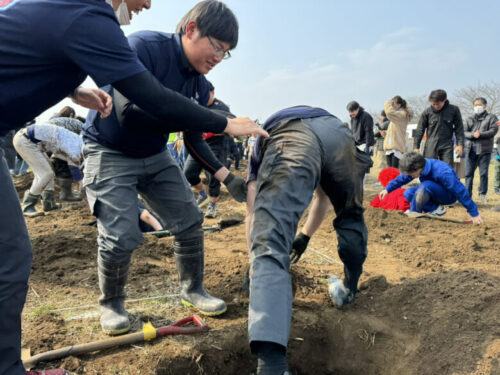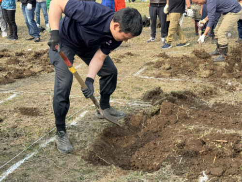 「まずは掘る場所を確定させます。1番手は地面を柔らかくすることを目的に。2番手は掘り起こしましょう。3番4番5番で掘っていきましょう」