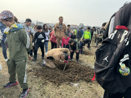 そんな思いを払拭するかのごとく、今年も南区川尻の河川敷で穴掘り大会が開催されたので、穴掘ってきました。