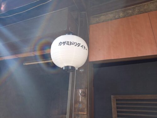 入口の提灯に「カザミドリダイナー」とお店の名前が。