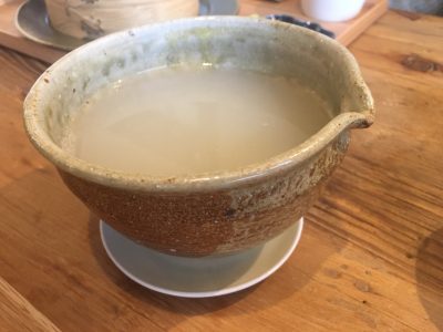 素敵な器で蕎麦湯も出してもらえ、つゆも残さずいただくことができます。