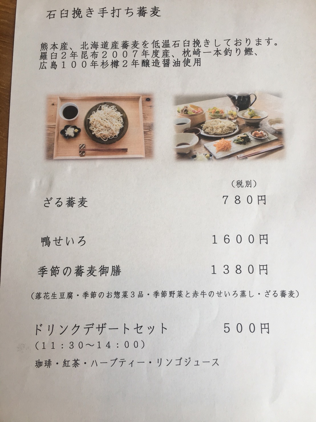 石臼挽きの手打ち蕎麦が自慢で、だしは枕崎の一本釣り鰹、醤油は100年以上使われている杉樽で2年熟成された瀬戸内海の醤油を使っているそうです。いずれもご主人が、蕎麦行脚をしながらたどり着いたという珠玉の逸品です。