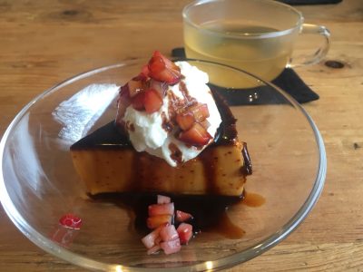 オレンジ系のさわやかなハーブティーと、奥様手づくりのプリン。こちらもおいしすぎて、幸せがあふれます。