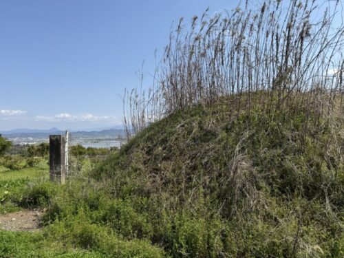古墳はぼさぼさですが、ここは本当に景色が素晴らしい。こんなに高い所に岩をたくさん運んで、古墳は作られております。