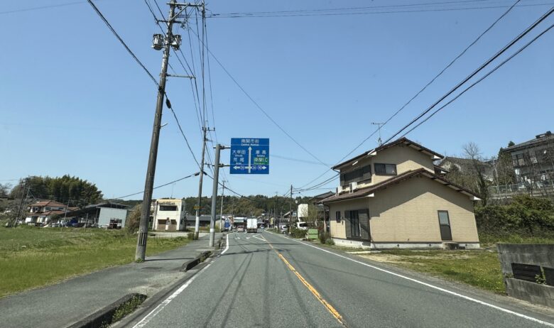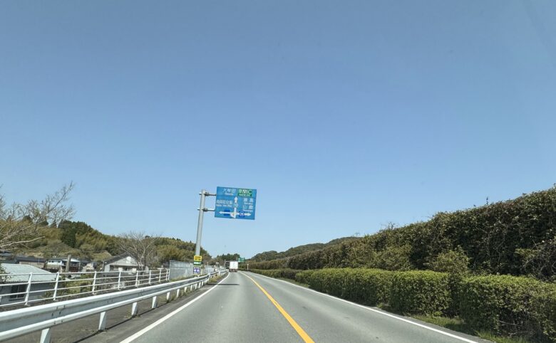 まっすぐすぎて不安になる、そんなことを思った瞬間に青看板がヒュッと現れてくれます。