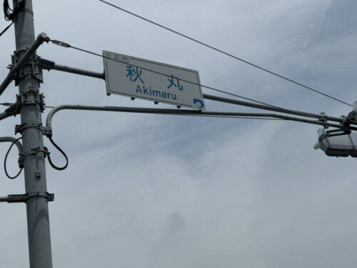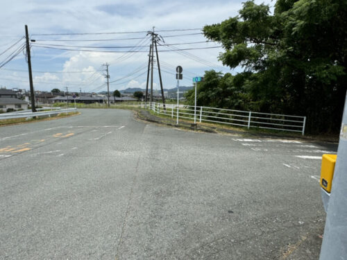 さてここが「秋丸交差点」です。正面左に見えるのが高瀬大橋ですね。