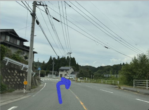 青看板の矢印はどこを指しとると?まっすぐ?それとも左折???