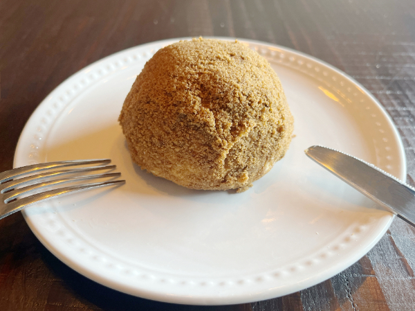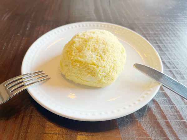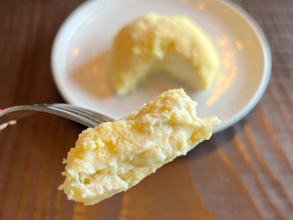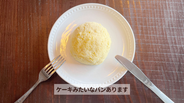 パンの外側はたっぷりのスポンジケーキ。かぶり付くとぽろぽろ落ちて大変なことになるので、ナイフとフォークを使うのがおすすめなんだそう。ケーキをいただくようですね。
