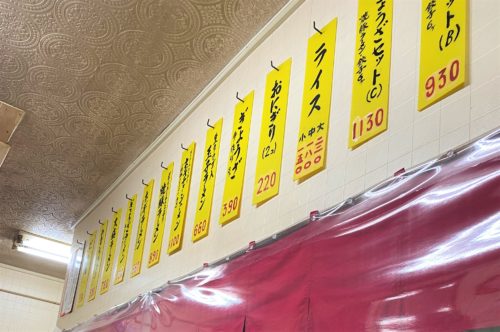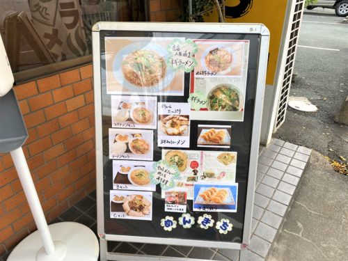 玄関口の立て看板に一部ラーメンの写真は確認できますが、メニューの情報はこの短冊で十分。